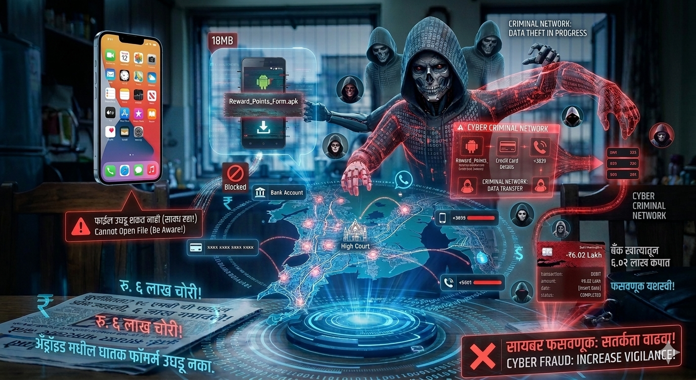 • डेटा चोरी: न्यायमूर्तींनी घरकामासाठी असलेल्या व्यक्तीच्या अँड्रॉइड फोनचा वापर करून ती फाईल डाऊनलोड (Download) केली आणि त्यात क्रेडिट कार्डची संवेदनशील माहिती (Sensitive Data) भरली. ही माहिती भरताच काही वेळातच त्यांच्या खात्यातून ६.०२ लाख रुपये डेबिट (Debit) झाल्याचा मेसेज (Message) आला.