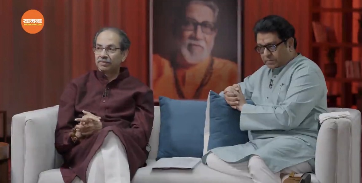 सोलापूर,दि.८: शिवसेना (ठाकरे गट) पक्षप्रमुख उध्दव ठाकरे आणि मनसे अध्यक्ष राज ठाकरे यांची संयुक्त मुलाखत दैनिक सामनाचे कार्यकारी संपादक संजय राऊत आणि अभिनेते महेश मांजरेकर यांनी घेतली आहे. ठाकरे बंधूंची संयुक्त मुलाखत पहिल्यांदाच घेण्यात आली आहे. उध्दव ठाकरे आणि राज ठाकरे यांना एकत्र येण्यासाठी २० वर्षे लागली. यावर मुलाखतीत संजय राऊत यांनी प्रश्न विचारला.