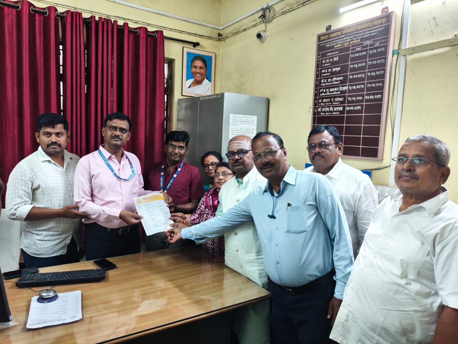 सोलापूर येथील जिल्हा ग्रंथालय अधिकारी कार्यालयात तांत्रिकी साहाय्यक प्रमोद पाटील यांच्याकडे मागण्यांचे निवेदन देण्यात आले. यावेळी निरीक्षक संजय ढेरे, लिपिक प्रदीप गाडे उपस्थित होते. मुख्यमंत्री देवेंद्र फडणवीस यांनी हिवाळी अधिवेशनापूर्वी आमच्या मागण्या संदर्भात बैठक घेतली नाही तर नागपूर येथे ११ डिसेंबर रोजी हिवाळी अधिवेशनात विधानभवनावर मोर्चा काढण्यात येणार असल्याचे बेडगे म्हणाले. यावेळी सविता बेडगे, विजयालक्ष्मी क्षिरसागर, विजयालक्ष्मी गुड्डर, वसंत धोत्रे, प्रकाश शिंदे, भारत बसुदे, तिपण्णा गणेरी, धोंडिराम जेवूरकर, भास्कर कुंभार, मदन तोरवी, गुरूशांत कुंभार, सिद्राम मुद्देबिहाळ, तात्या भोसले, नरसिंह मिसालोलू,, सिध्दाराम हालकुडे, रामचंद्र वग्गे, गिरीश मठपती , सिध्दाराम बंगले, शरणप्पा बोरोटे, मुल्ला जमादार आदी उपस्थित होते.