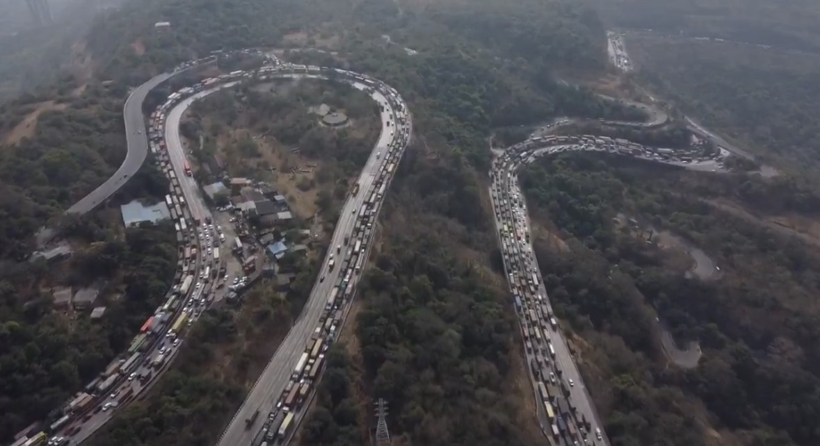 सोशल मीडियावर व्हायरल होत असलेल्या एरिअल व्ह्यू फोटोंमध्ये खंडाळा घाटातील नागमोडी वळणांवर किलोमीटरपर्यंत केवळ वाहनांच्या रांगा दिसत आहेत, जणू हा महामार्ग नसून वाहनांचे एक महाकाय सर्प असल्याचेच भासत आहे. एसी आणि लाईट्स सुरू ठेवल्यामुळे अनेक गाड्यांमधील इंधन संपले असून, आता त्या गाड्या धक्का मारून बाजूला करण्याची वेळ आली आहे.