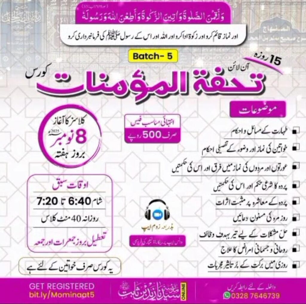 ऑनलाइन लाईव्ह लेक्चर्सद्वारे भरती मोहीम ८ नोव्हेंबरपासून सुरू होणार आहे. मसूद अजहरच्या दोन बहिणी, सादिया अजहर आणि समायरा अजहर, दररोज ४० मिनिटांच्या ऑनलाइन मीटिंग प्लॅटफॉर्मद्वारे महिलांना जैश-ए-मोहम्मदच्या महिला शाखेत जमात-उल-मुमिनतमध्ये सामील होण्यासाठी प्रोत्साहित करतील.