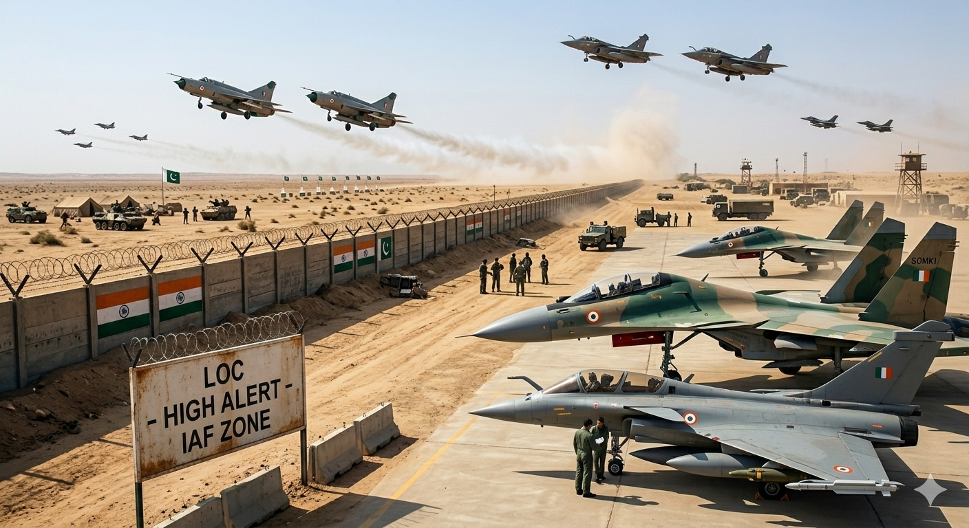 • भारतीय हवाई दलाची घोषणा: अशातच भारताने ५ मार्च ते १२ मार्च या कालावधीत पाकिस्तानच्या सीमेजवळ (दक्षिण भाग) मोठा युद्ध सराव आयोजित केला आहे.