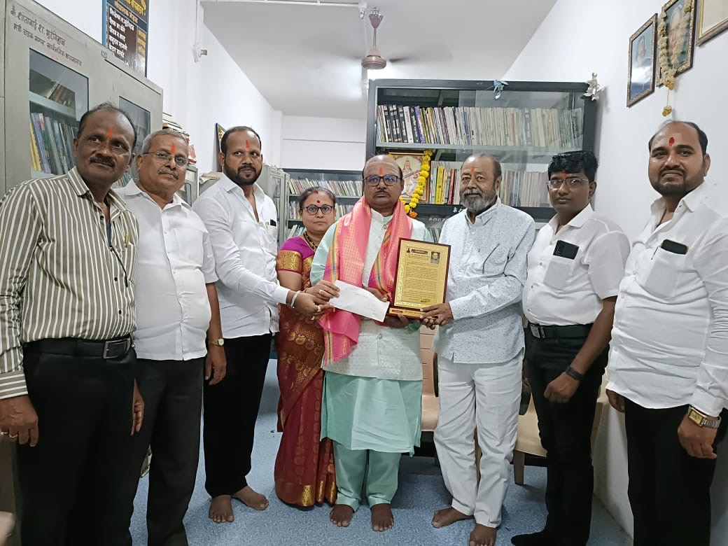सुरुवातीला सरस्वती मातेच्या प्रतिमेचे श्रीकांत डांगे यांच्या हस्ते पूजन करून पुष्पहार अर्पण करण्यात आला. यावेळी अनुराधा बेडगे व सदाशिव बेडगे यांनी सर्व उपस्थिताचे शाल व श्रीफळ देऊन सत्कार केला. यानंतर सदाशिव बेडगे यांचा श्रीकांत डांगे यांच्या हस्ते सन्मान पत्र रोख रक्कम ११००१ रूपये शाल व श्रीफळ देऊन यथोचित सन्मान करण्यात आला.