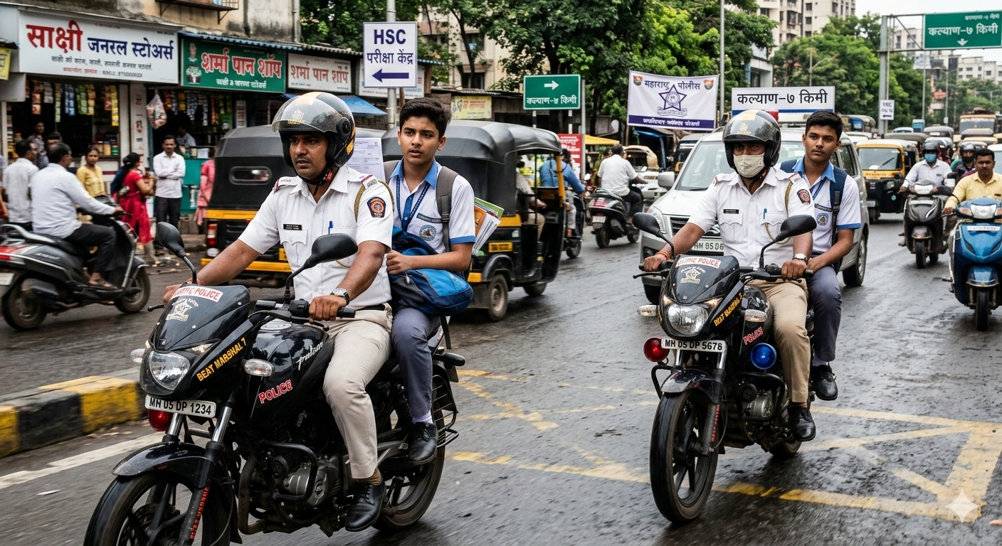 दहावी आणि बारावीच्या परीक्षांच्या पार्श्वभूमीवर ठाणे पोलिसांनी विद्यार्थ्यांसाठी विशेष व्यवस्था केली आहे. वाहन बिघाड किंवा वाहतूक कोंडी (Traffic Jam) अशा समस्या उद्भवल्यास मदतीसाठी ५४ रायडर्स (Riders) तैनात करण्यात आले आहेत.