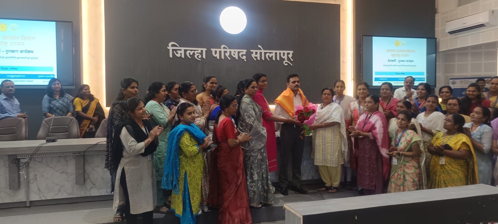 या उल्लेखनीय यशाबद्दल सोलापूर जिल्हा परिषदेचे मुख्य कार्यकारी अधिकारी कुलदीप जंगम यांचा सर्व महिला कर्मचारी वर्गाच्या वतीने भव्य सत्कार करण्यात आला. तसेच उपमुख्य कार्यकारी अधिकारी स्मिता पाटील यांचा सर्व कर्मचारी पुरुष बांधवांच्या वतीने सन्मानपूर्वक सत्कार करण्यात आला.